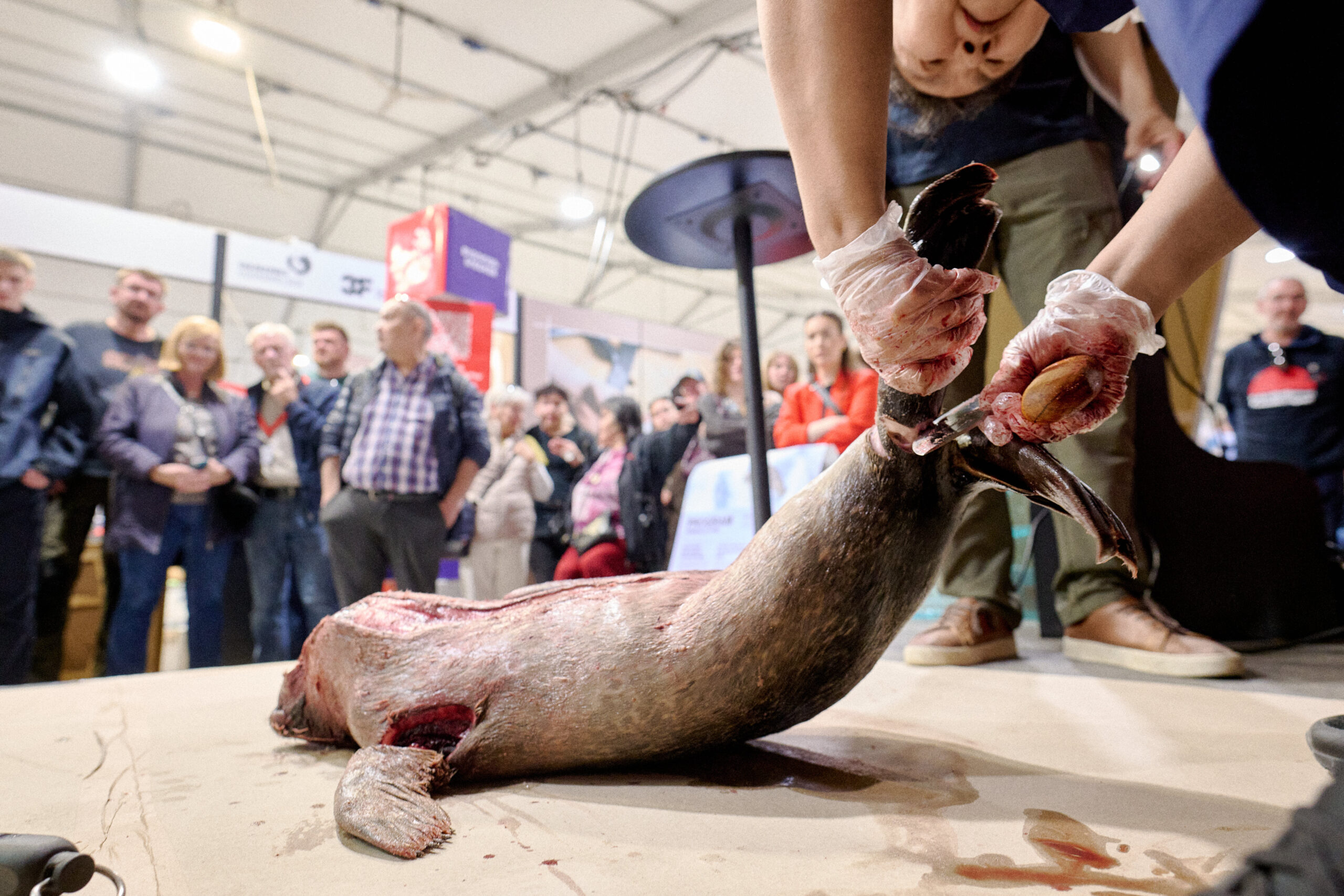 ”Der kommer folk i alle aldre og ser på. Børn, unge, voksne og ældre. Og man ser mange forskellige ansigtsudtryk. For det er ikke alle, der for eksempel er vant til at se en sæl blive flået. Se blodet og mærke lugten. Men det betyder meget at vise, hvad vi kan,” lød det fra Sofie Amundsen, en ung nationaldragtsyerske på Support Grønland-standen i Hal 1.